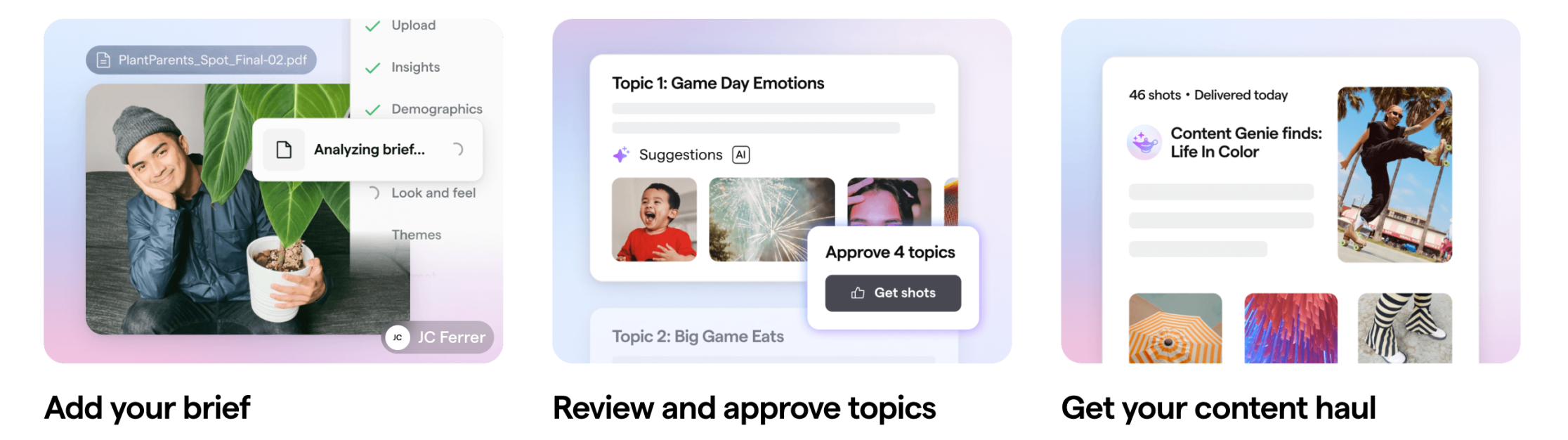 In just three simple steps, Genie turns your creative intent into on-brief results: